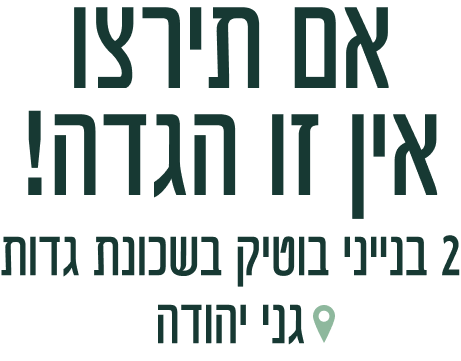 פרויקט מגורים ייחודי המציע מגוון דירות 3-5 חד' יחד עם דופלקסים מפוארים בשני בנייני בוטיק הממוקמים בסביבה פסטורלית על הגדה, בשכונת גדות, גני יהודה. [יהוד-מונסון]